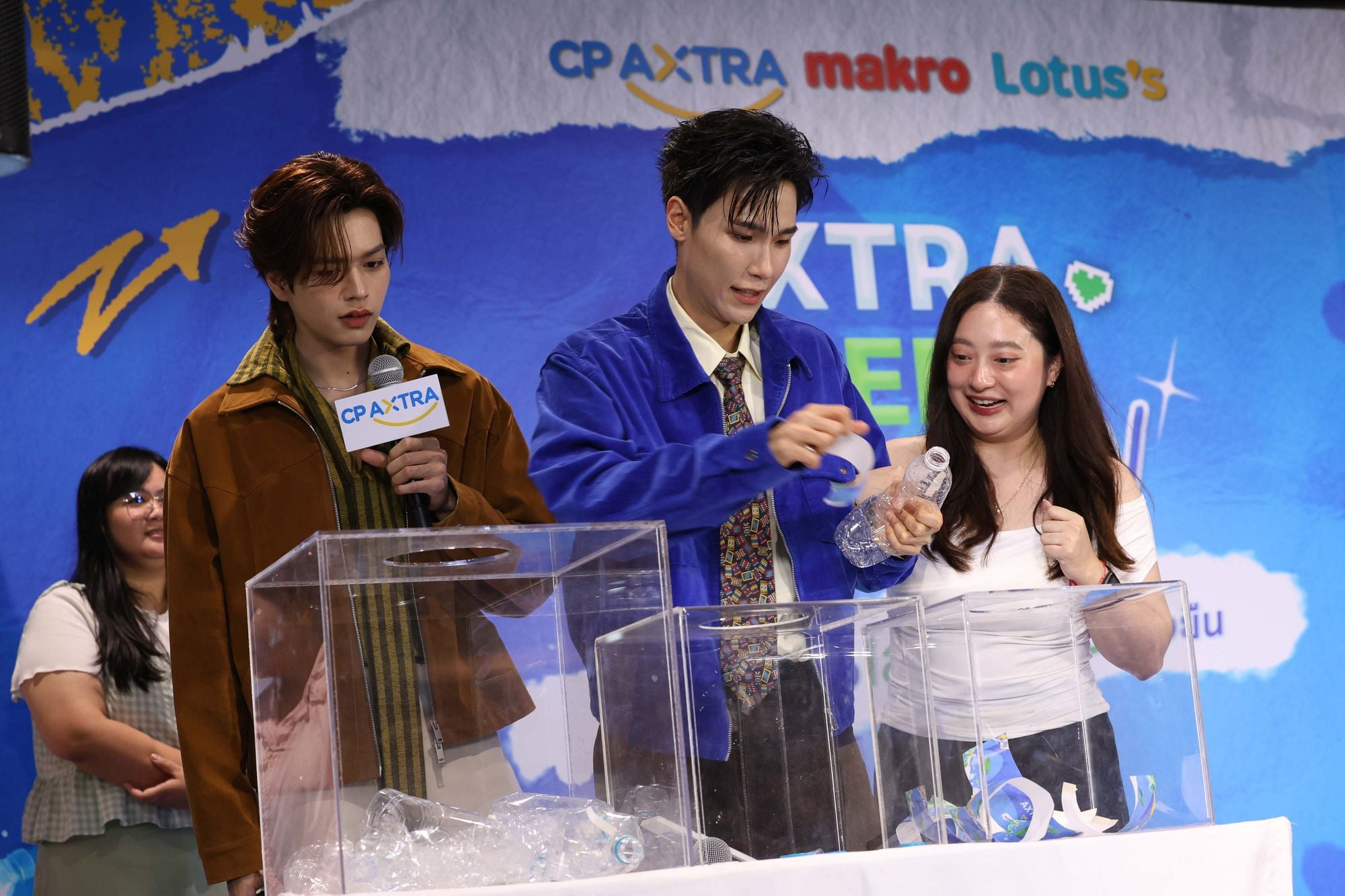 ทันทีที่ทั้งสองหนุ่มปรากฏตัวบนเวทีพร้อมโชว์เพลงคู่ เสียงกรี๊ดก็ดังสนั่น ก่อนทั้งสองจะพูดคุยทักทายแฟน ๆ และชวนทุกคนมาร่วมเป็นพลังเล็กๆ ที่ช่วยสร้างโลกสีเขียว เริ่มต้นจากเรื่องง่าย ๆ ใกล้ตัว เช่น การประหยัดพลังงาน การคัดแยกขยะ และการใช้ทรัพยากรอย่างรู้คุณค่า ความสนุกยังเดินหน้าต่อ เมื่อแฟนคลับผู้โชคดี 10 ท่าน ได้ขึ้นเวทีร่วมเล่นเกม “เกี่ยวแขนรักษ์โลก” กับสองหนุ่มแบบใกล้ชิด แบ่งทีมเป็นทีมจูเนียร์และทีมมาร์ค แข่งขันกันทำภารกิจแยกขวดพลาสติก ทั้งแยกฝา ลอกฉลาก และนำขวดเข้าสู่กล่องรีไซเคิล ท่ามกลางเสียงเชียร์จากแฟนๆ ที่ลุ้นกันแบบไม่มีพัก