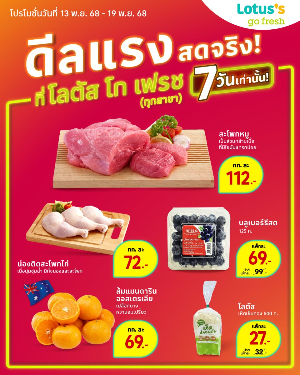 Promotions ช้อปสินค้าอาหารสดที่โลตัส โก เฟรช 13 Nov 25 - 19 Nov 25 ช้อปสินค้าอาหารสดที่โลตัส โก เฟรช ดีลแรงสดจริง! จัดเต็ม 7 วันเท่านั้นช้อปเลย Share this article
