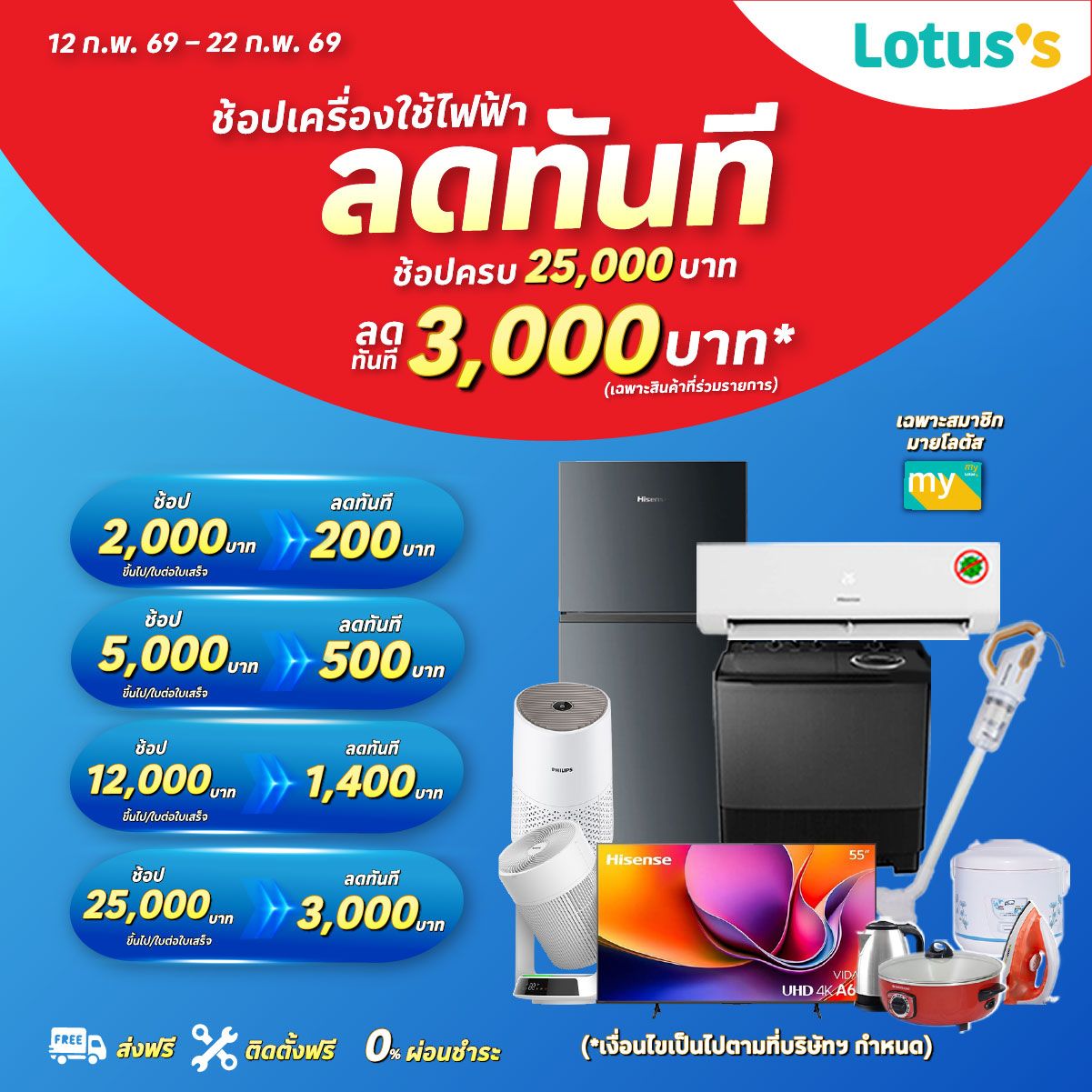 โปรเมื่อซื้อเครื่องใช้ไฟฟ้าที่ร่วมรายการ ส่วนลดทันที  12 ก.พ. 69 – 22 ก.พ. 69