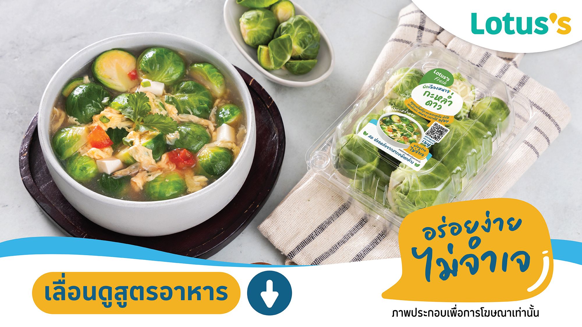 - ตักซุปไข่ราดบน กะหล่ำดาวที่ลวกไว้