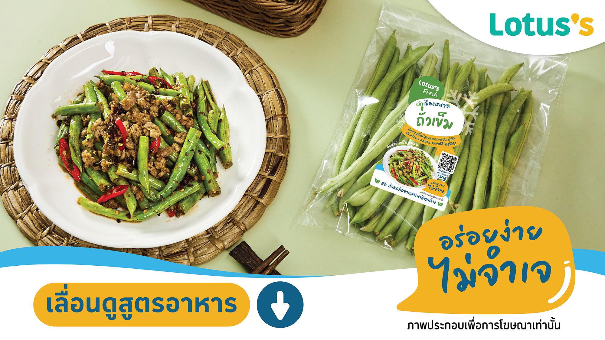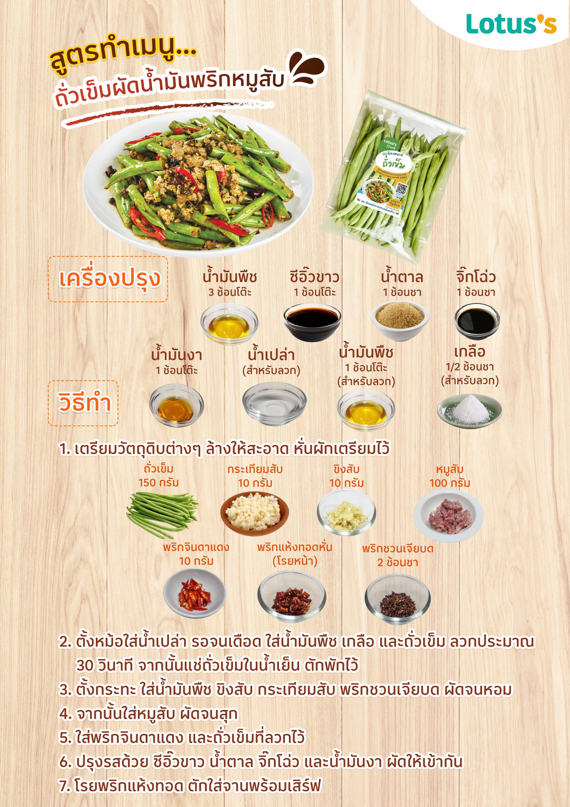 ถั่วเข็มผัดน้ำมันพริกหมูสับ