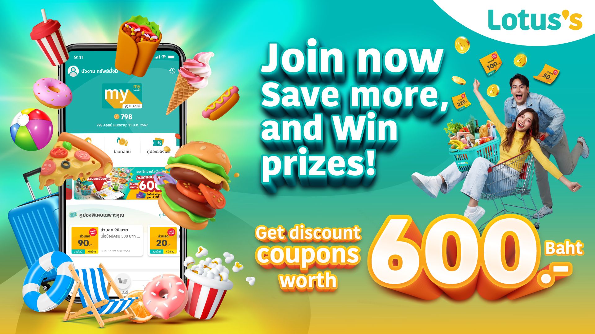 - THB 20 Food Court Coupon* (minimum spent THB 200)