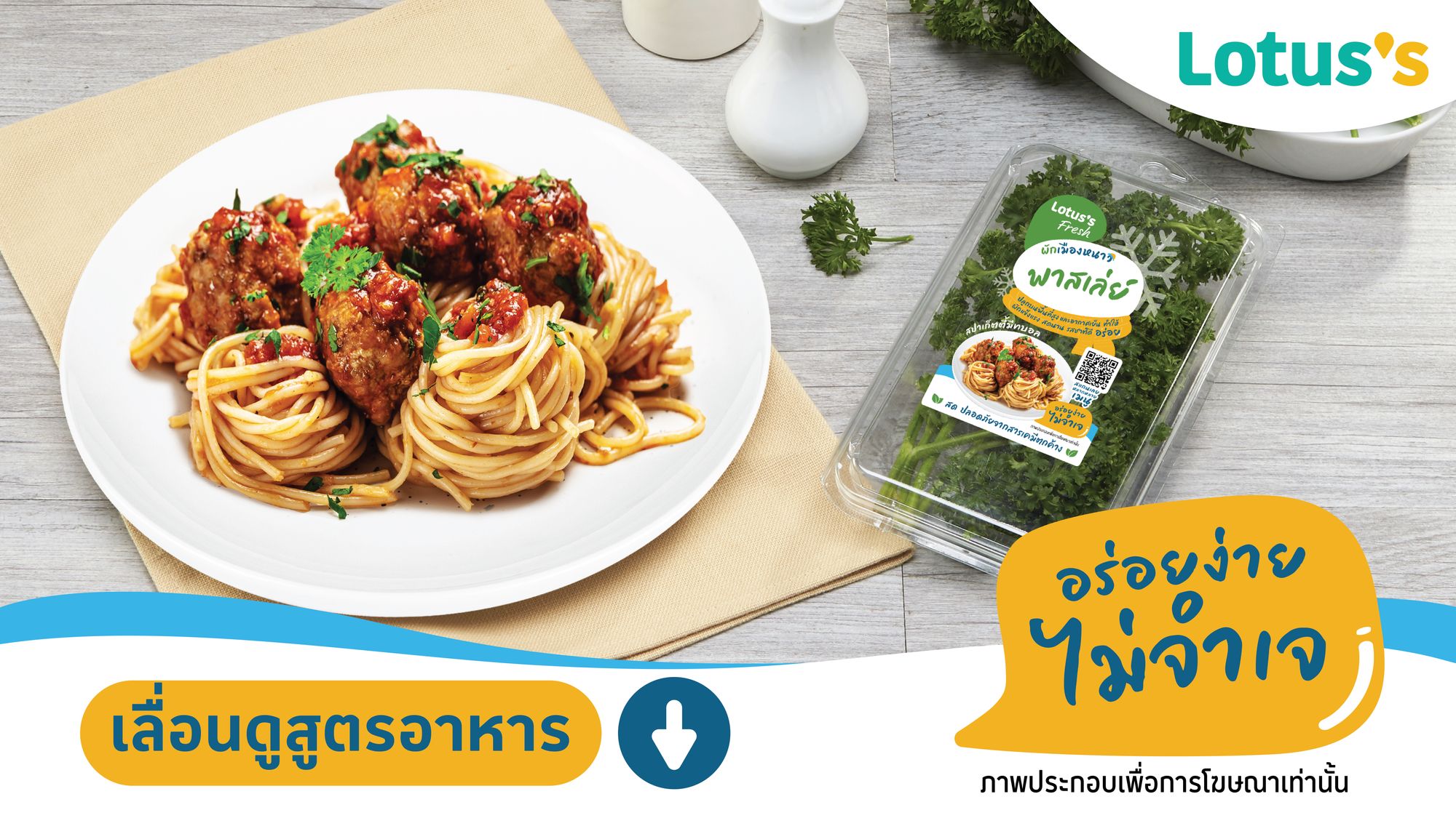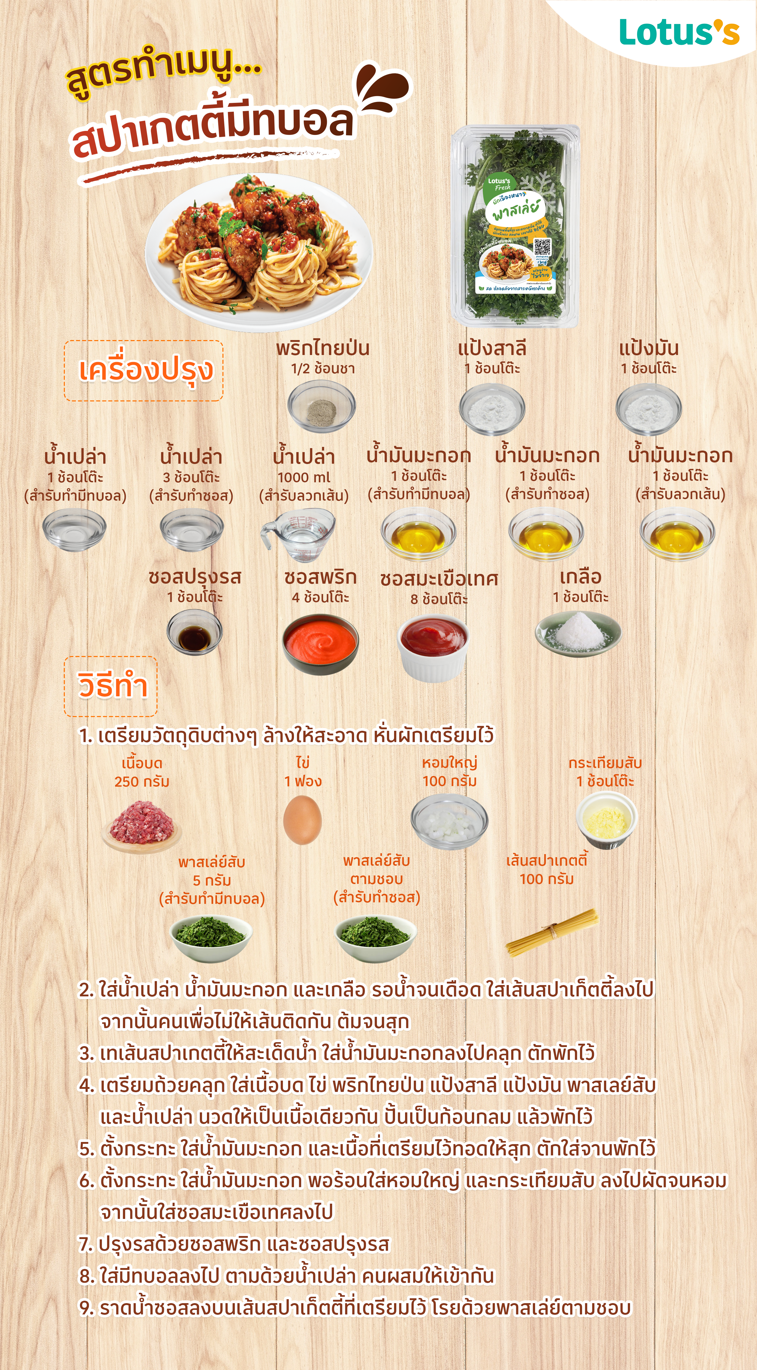 - ราดน้ำซอสลงบนเส้นสปาเก็ตตี้ที่เตรียมไว้ โรยด้วยพาสเล่ย์ตามชอบ