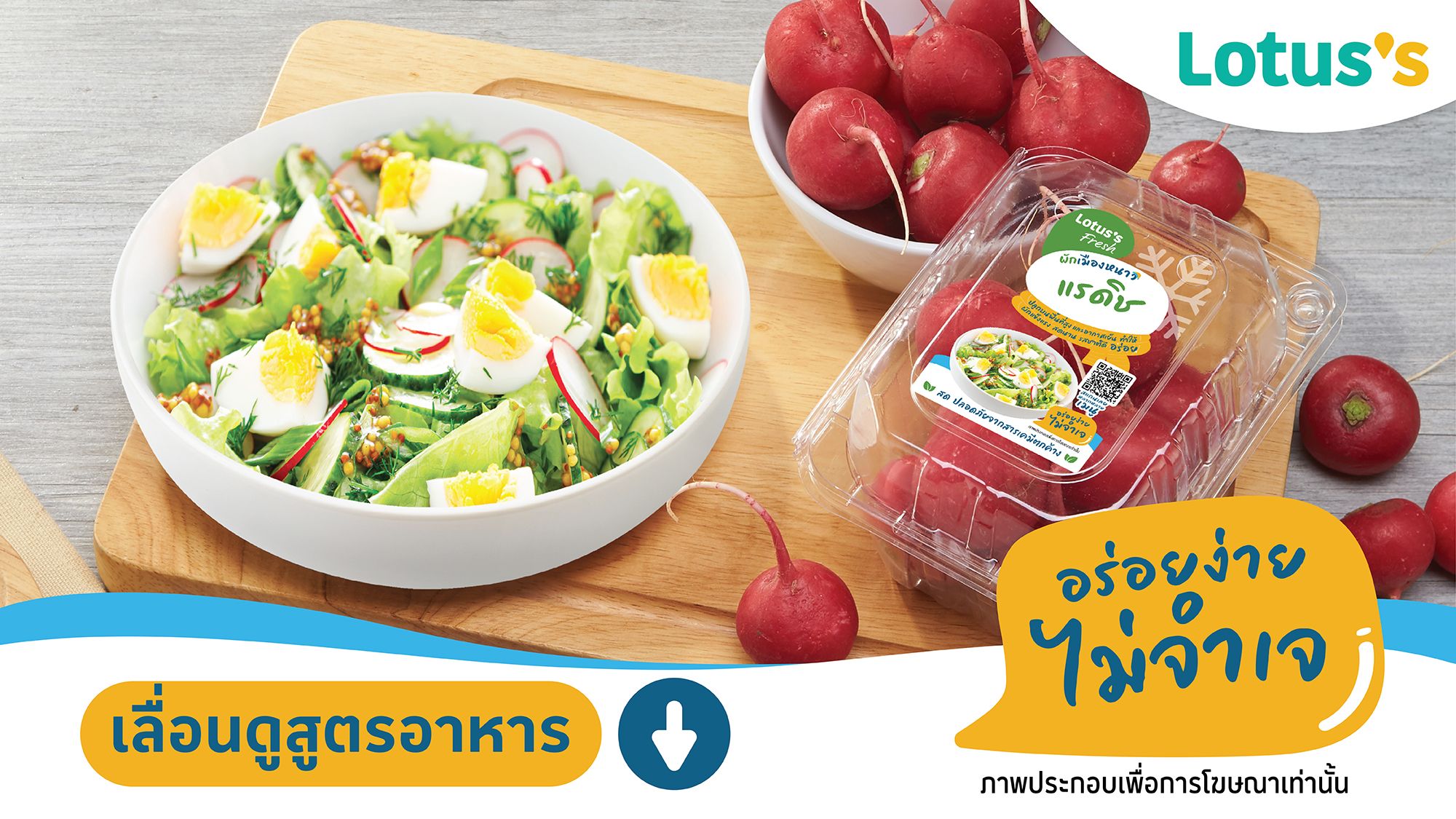 - คลุกแรดิชหั่น เบบี้คอสหั่น ผักกาดหอมหั่น ใส่น้ำสลัด คลุกผสมให้เข้ากัน