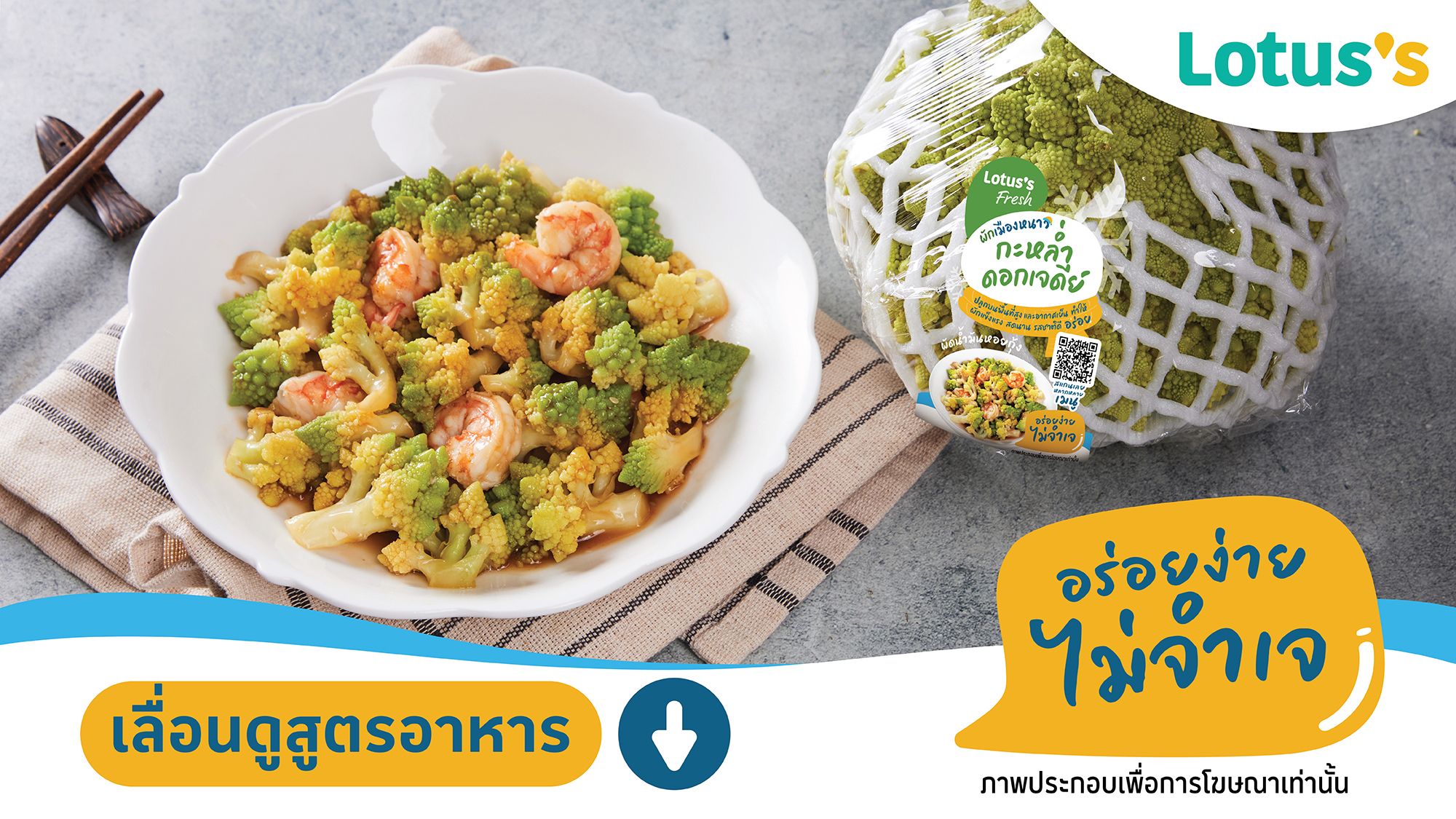 กะหล่ำดอกเจดีย์ ผัดน้ำมันหอยกุ้ง