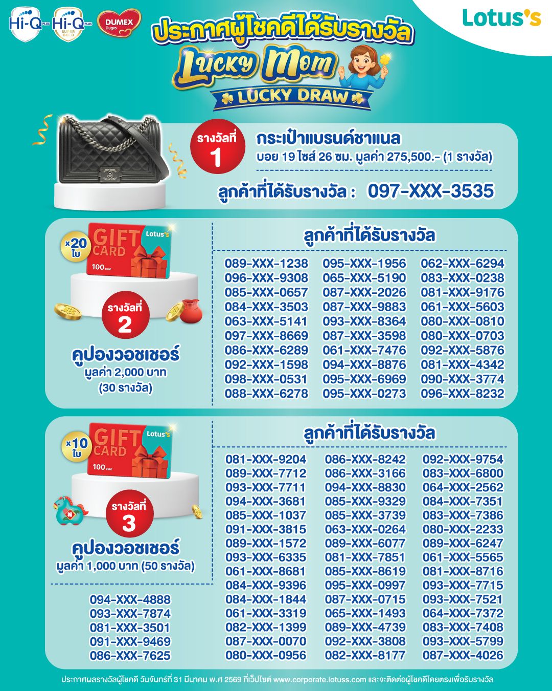 ประกาศรายชื่อแคมเปญ Lucky Mom Lucky Draw ลุ้นรับรางวัลสุดปัง