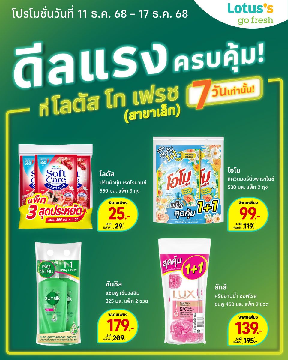 โปรโมชั่น ดีลแรง ครบคุ้ม! 11 ธ.ค. 68 - 17 ธ.ค. 68 ดีลแรง ครบคุ้ม! เฉพาะที่โลตัสโกเฟรชสาขาเล็กเท่านั้นคลิกเลย แชร์บทความนี้