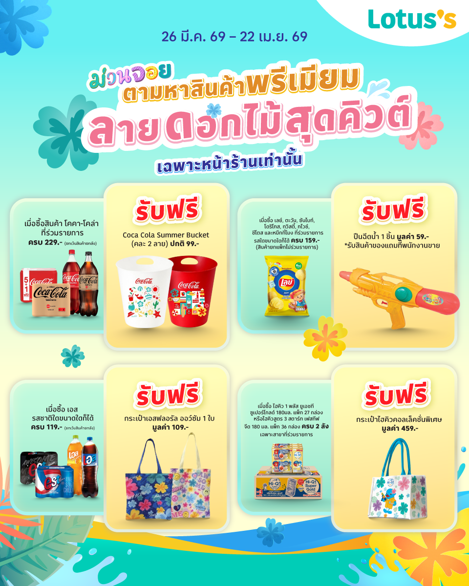 *เฉพาะหน้าร้านเท่านั้น ช้อปครบ รับฟรี! สินค้าพรีเมียม 26 มี.ค. 69 – 22 เม.ย. 69 ที่โลตัส ไฮเปอร์มาร์เก็ต (สาขาใหญ่)