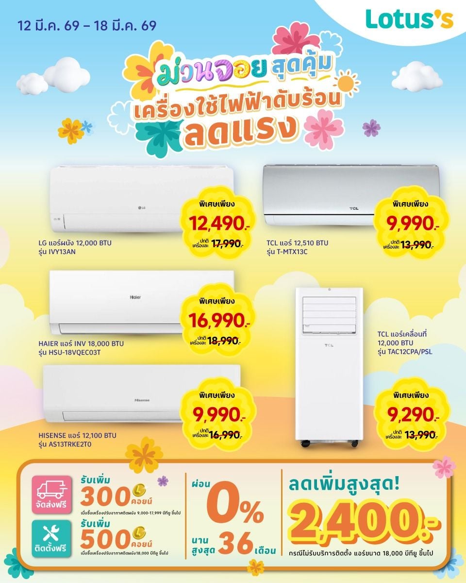 โปรโมชั่น ซัมเมอร์ม่วนจอย กับเครื่องใช้ไฟฟ้าลดแรง 12 มี.ค. 69 - 18 มี.ค. 69 ซัมเมอร์ม่วนจอย กับเครื่องใช้ไฟฟ้าลดแรง ช้อปเลย แชร์บทความนี้