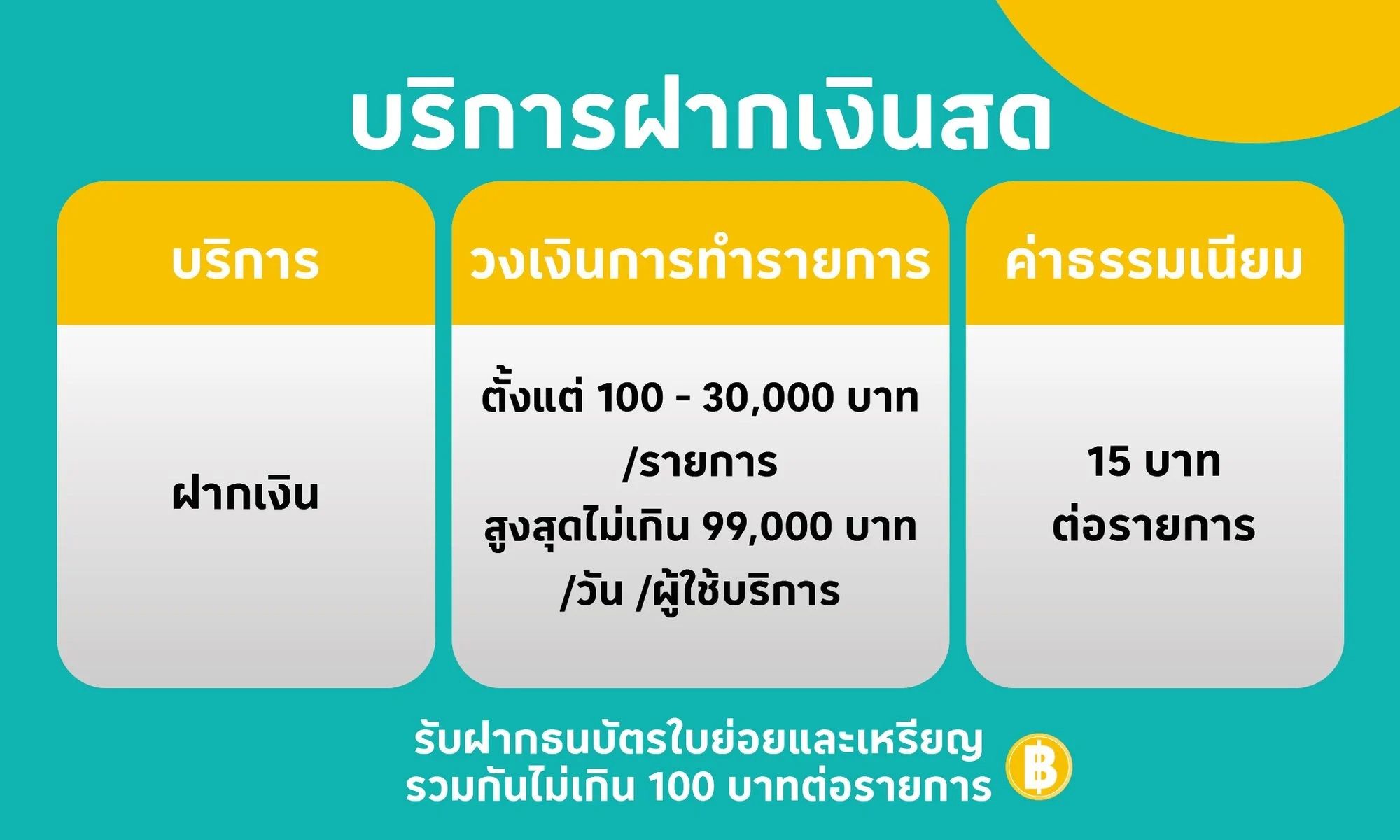 - ลูกค้ายื่นเงินสด พร้อมค่าธรรมเนียมการฝากเงินให้กับเจ้าหน้าที่แคชเชียร์