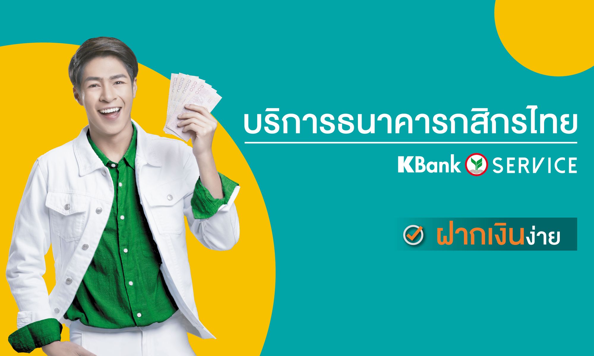 - ลูกค้าแจ้งความประสงค์ฝากเงินสดเข้าบัญชีธนาคารกสิกรไทย (สามารทำรายการได้ทั้งบัญชีสะสมทรัพย์และบัญชีกระแสรายวัน) พร้อมยื่นบัตรประจำตัวประชาชนแบบสมาร์ทการ์ดของผู้ฝากให้กับเจ้าหน้าที่แคชเชียร์