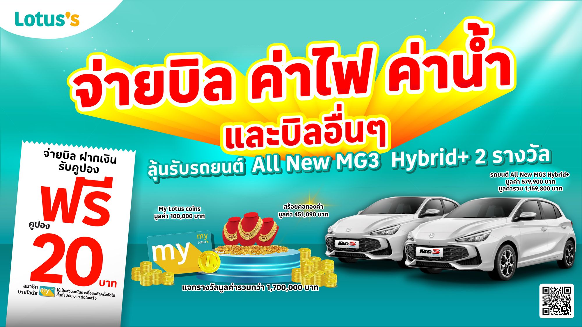 รางวัลที่ 1 : รถยนต์ MG3 Hybrid+ จำนวน 2 รางวัล รางวัลละ 579,900 มูลค่ารวม 1,159,800 บาท