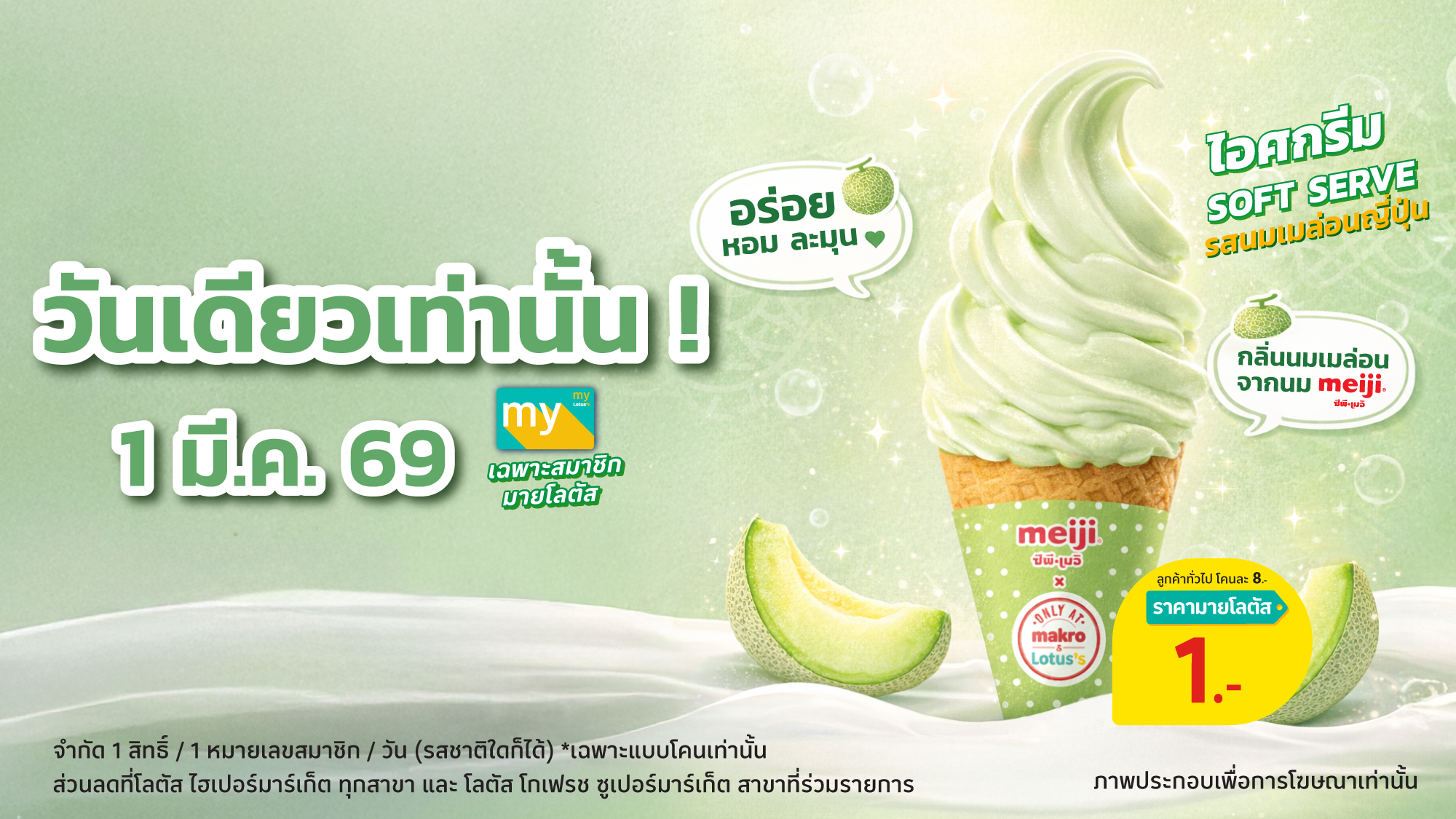 วันเดียวเท่านั้น!! 1 มี.ค. 69 ไอศกรีม Soft Serve 1 บาท ✨